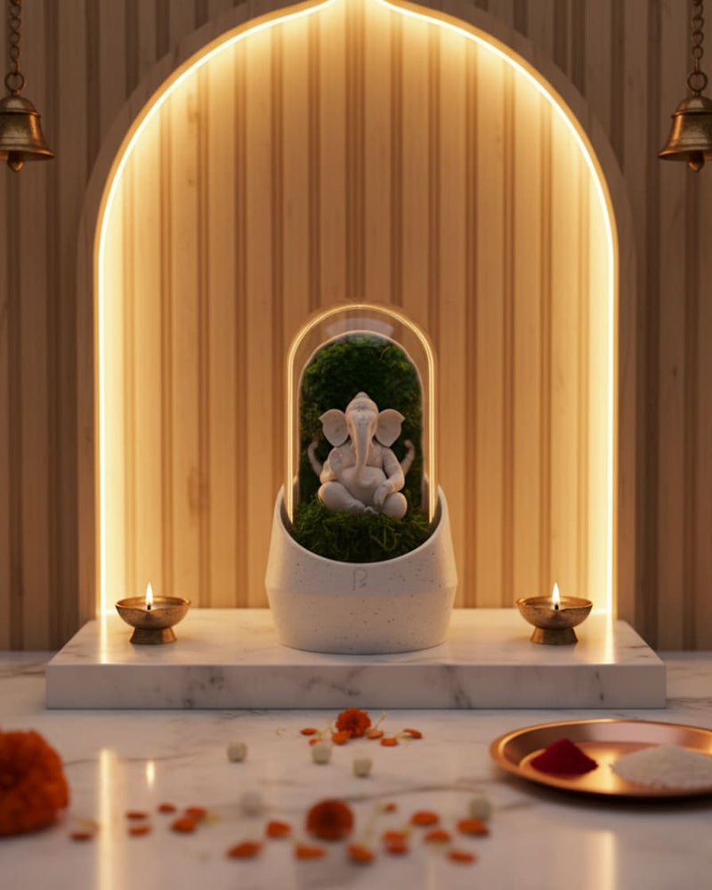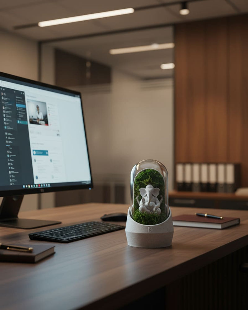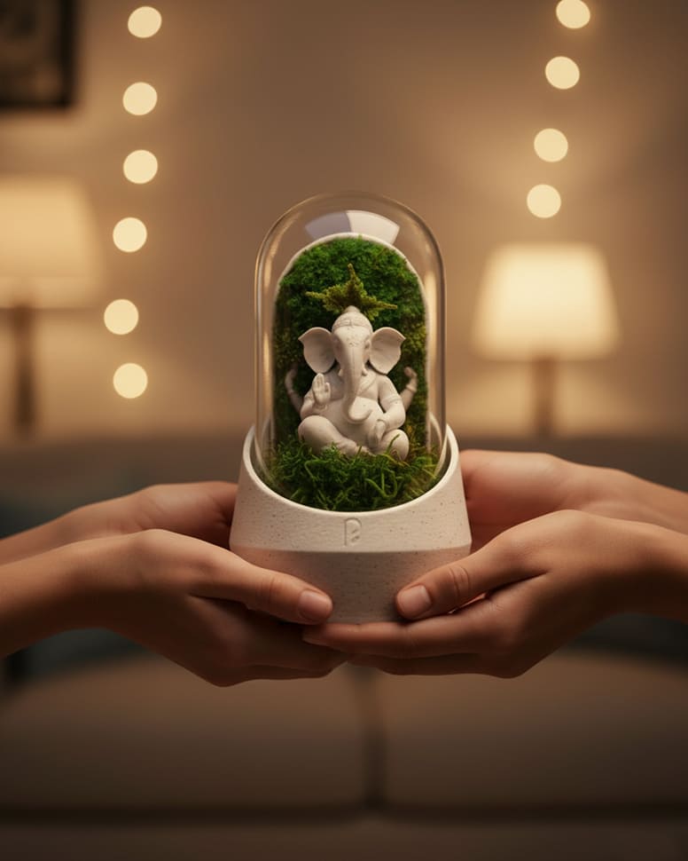 A self-contained, zero-maintenance Ganesha terrarium - bringing divine peace and natural serenity into your space effortlessly.