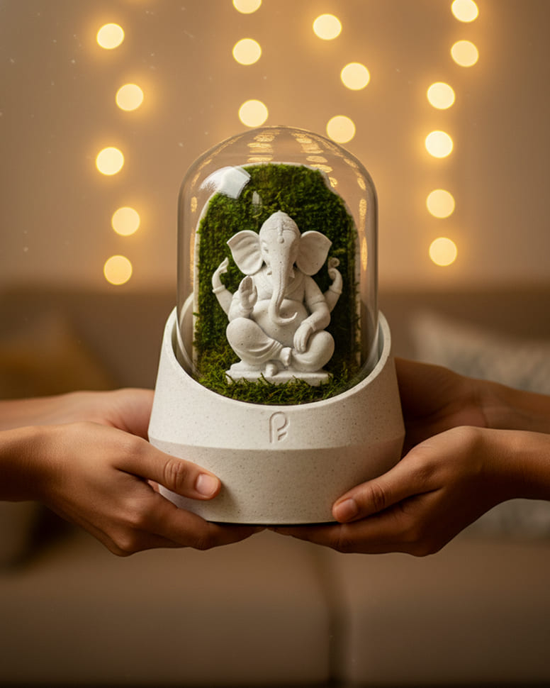 A self-contained, zero-maintenance Ganesha terrarium - bringing divine peace and natural serenity into your space effortlessly.