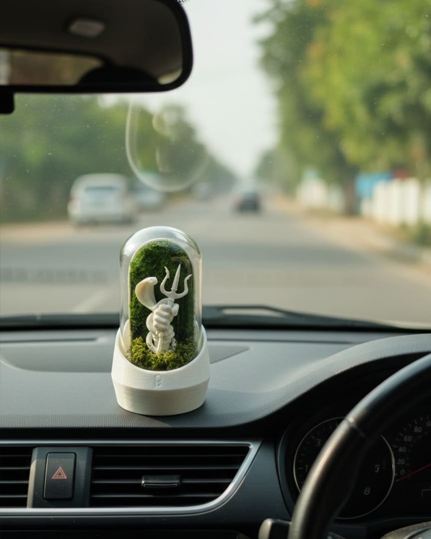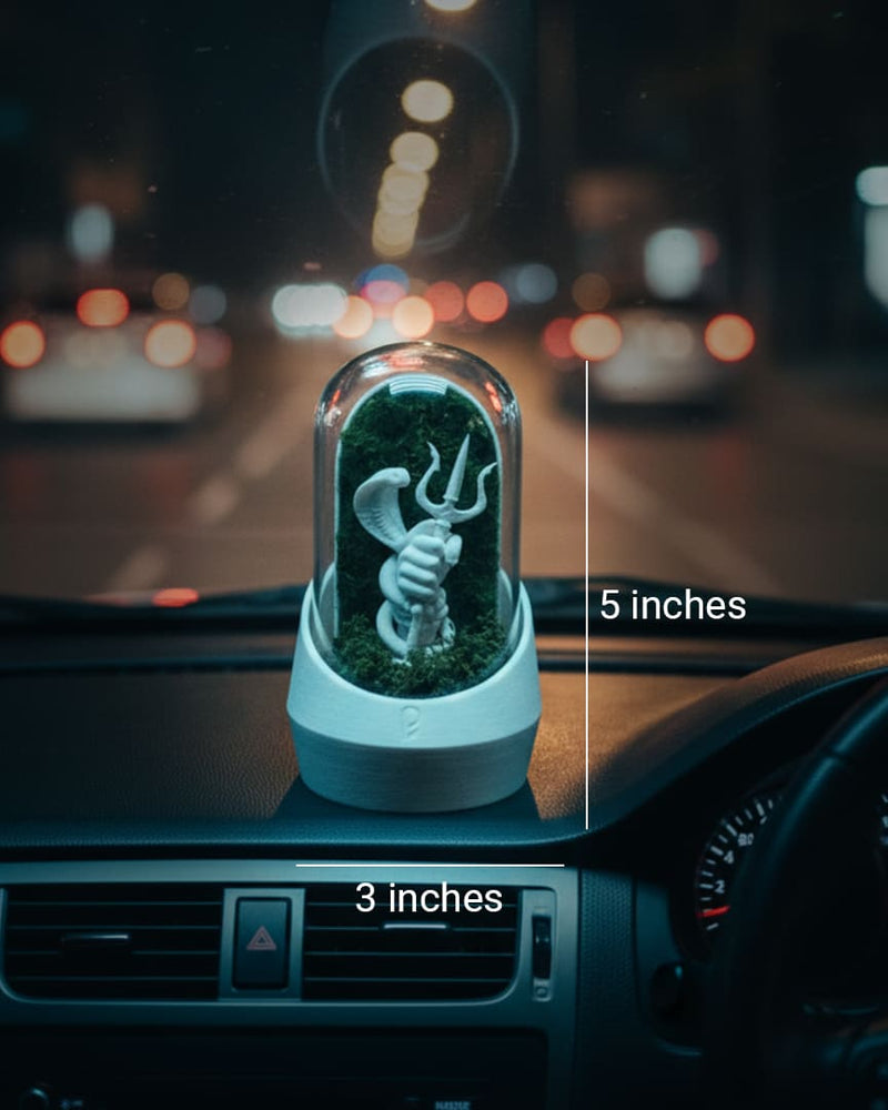 👉 The Glass Dome with Base (handcrafted) and the setup to stick it on dashboard.