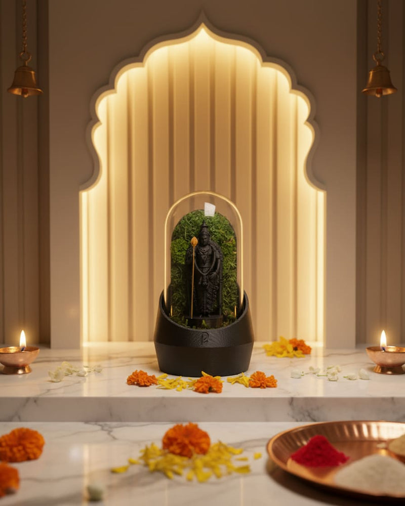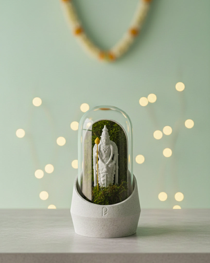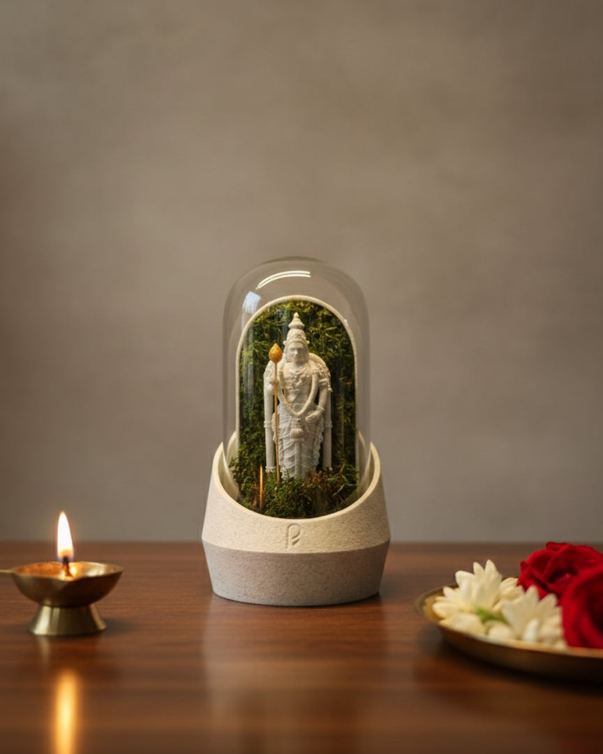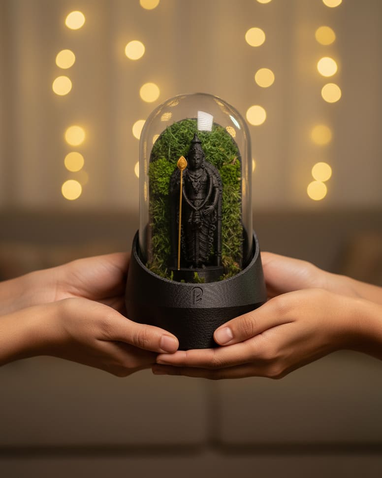 A self-contained, zero-maintenance Murugan Dome - embodying courage, victory, and divine protection, bringing unshakable strength and blessings into your space with effortless grace.