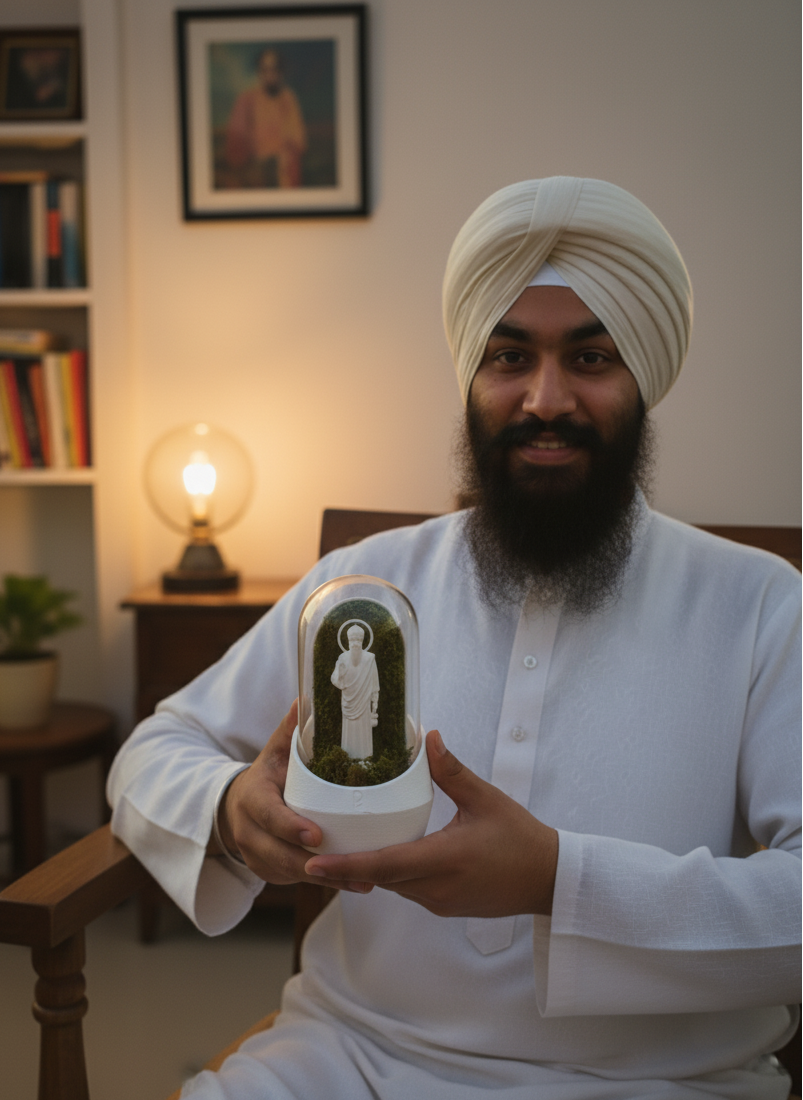 A sacred reminder of harmony, compassion, and divine wisdom - handcrafted with devotion, preserved natural moss, and Guru Nanak’s serene presence, designed to stay evergreen without sunlight, water, or care.