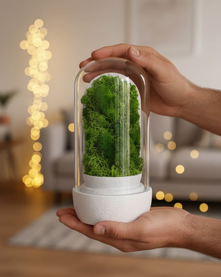 A self-contained, No-maintenance terrarium - delivering nature’s peace to your environment effortlessly.