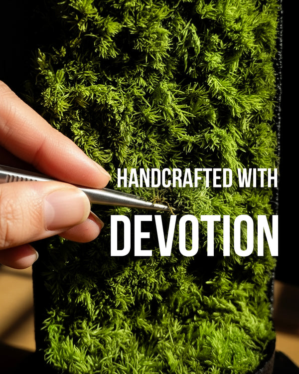 Each dome is handcrafted from eco-friendly plant based material, featuring real preserved moss that stays vibrant for atleast 15 years.